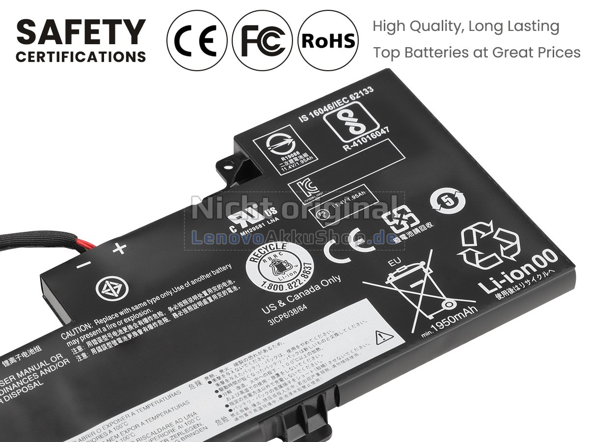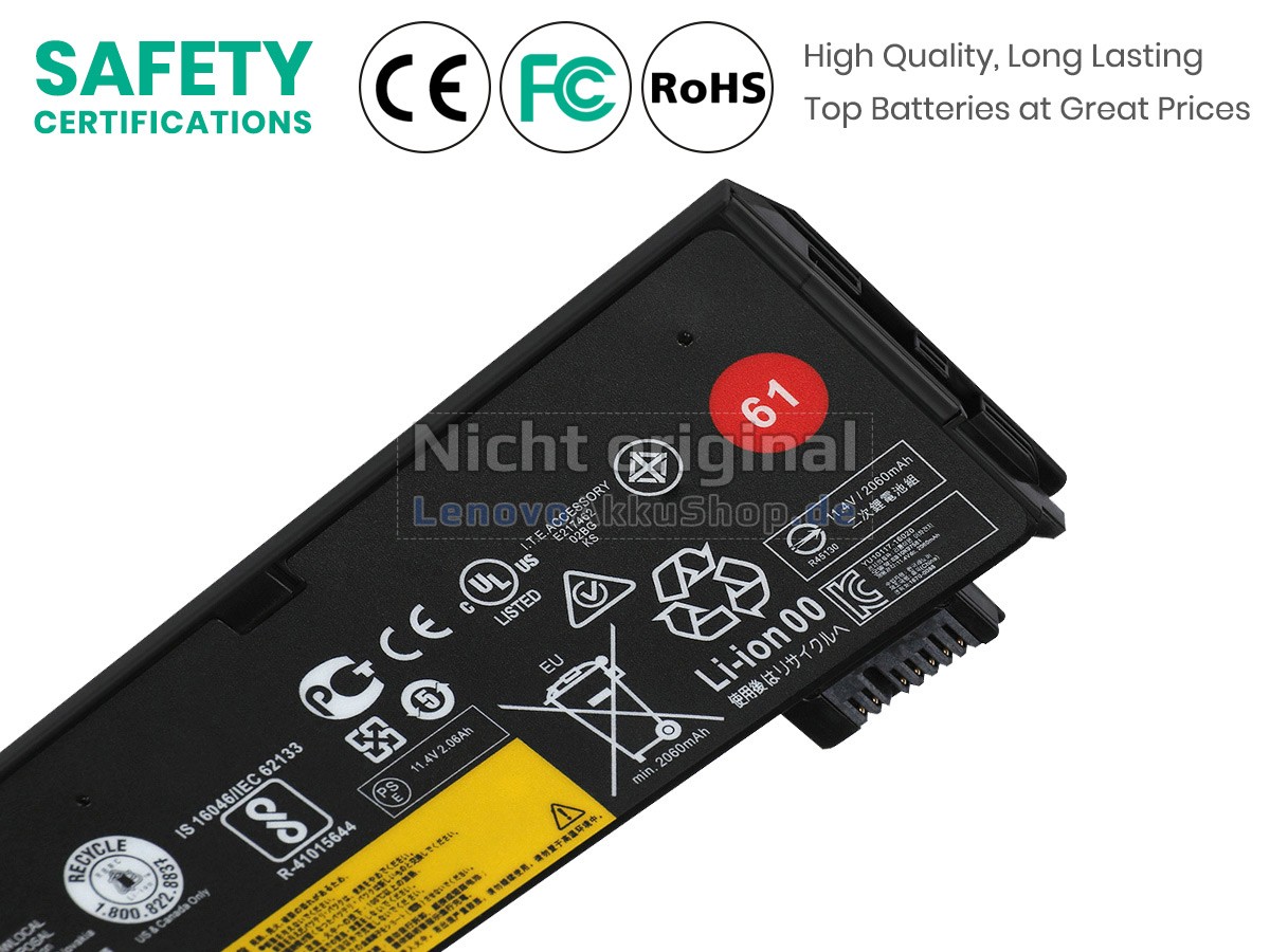 Unser Lenovo 01AV491 Ersatzakku hat auch eine Reihe von Sicherheitszertifizierungen wie GS, CE, UL, RoHS und ISO9001:2015 bestanden. Darüber hinaus werden alle 01AV491 Akkus vor Warenausgang mehr als 100 strengen Tests unterzogen. Nur um Ihre Verwendung komfortabler zu gestalten!