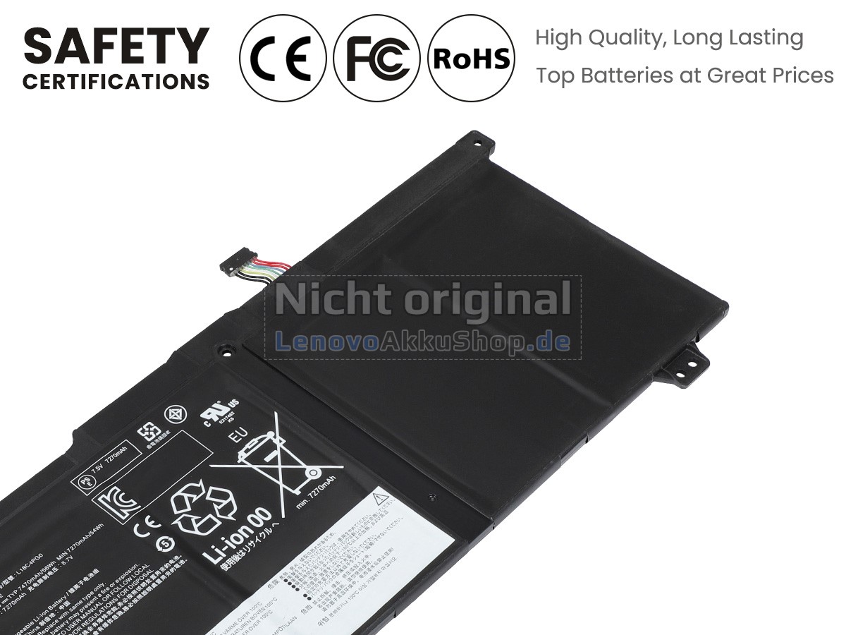 Unser Lenovo 5B10W67412 Ersatzakku hat auch eine Reihe von Sicherheitszertifizierungen wie GS, CE, UL, RoHS und ISO9001:2015 bestanden. Darüber hinaus werden alle 5B10W67412 Akkus vor Warenausgang mehr als 100 strengen Tests unterzogen. Nur um Ihre Verwendung komfortabler zu gestalten!