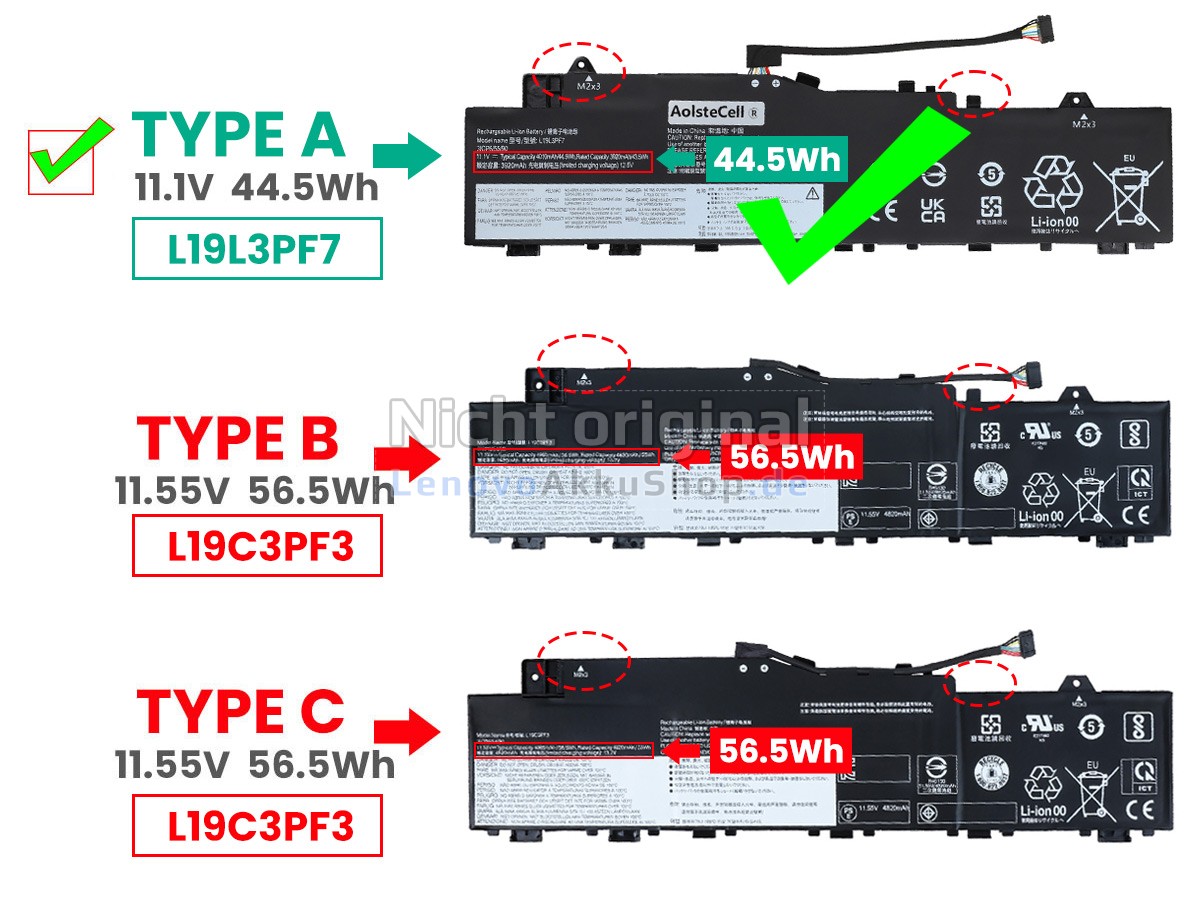There 3 types batteries, before placing an order please open your laptop to check your old battery first, ensure order one correct battery for your laptop. 3 Zellen 44.5WhAkku für Lenovo 5B10W86943