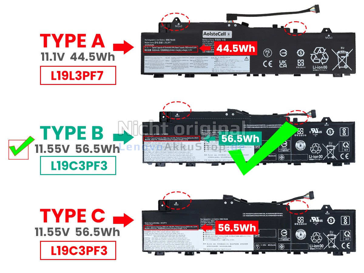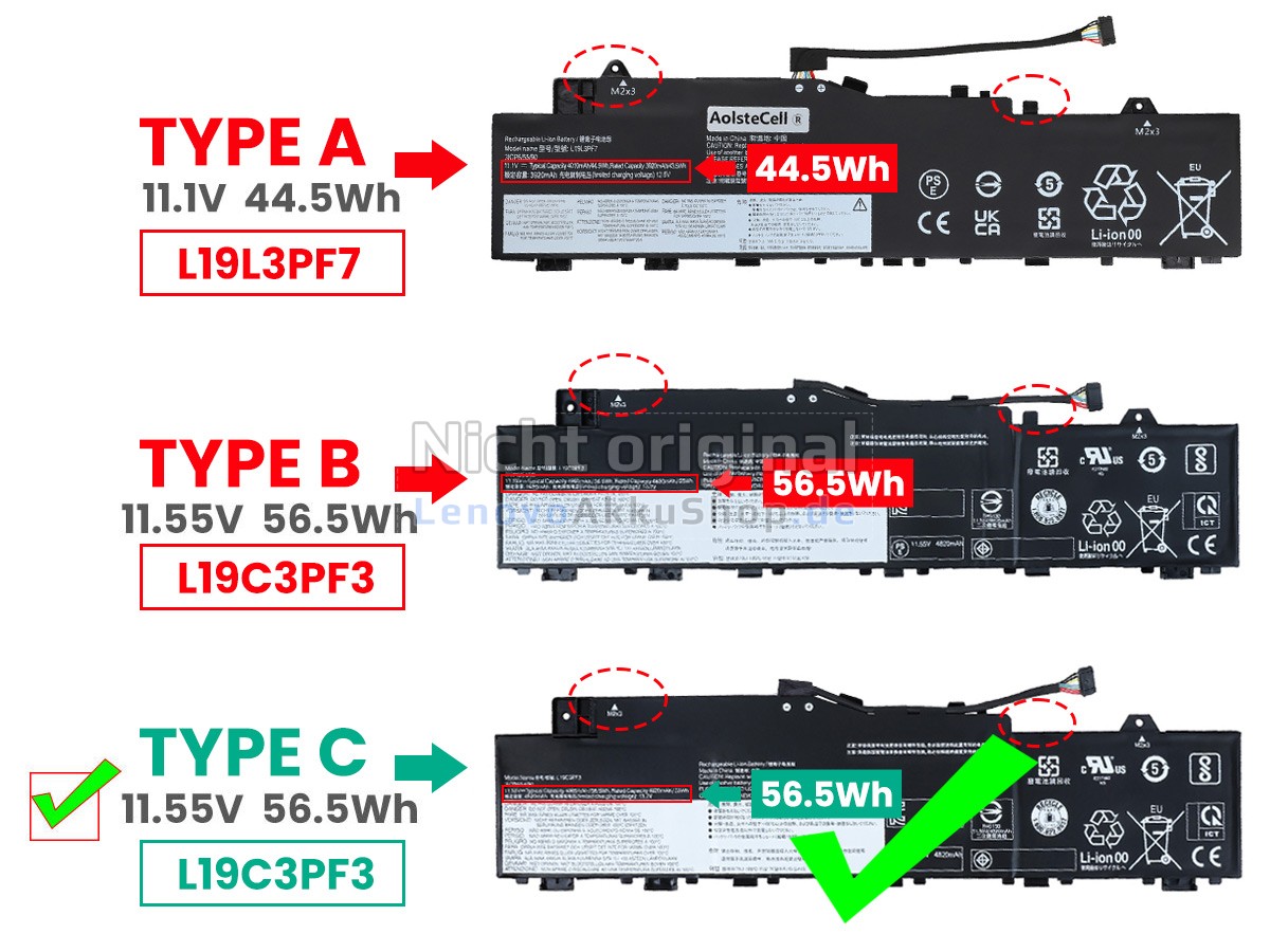 There 3 types batteries, before placing an order please open your laptop to check your old battery first, ensure order one correct battery for your laptop. 3 Zellen 56.5WhAkku für Lenovo 5B10W86943
