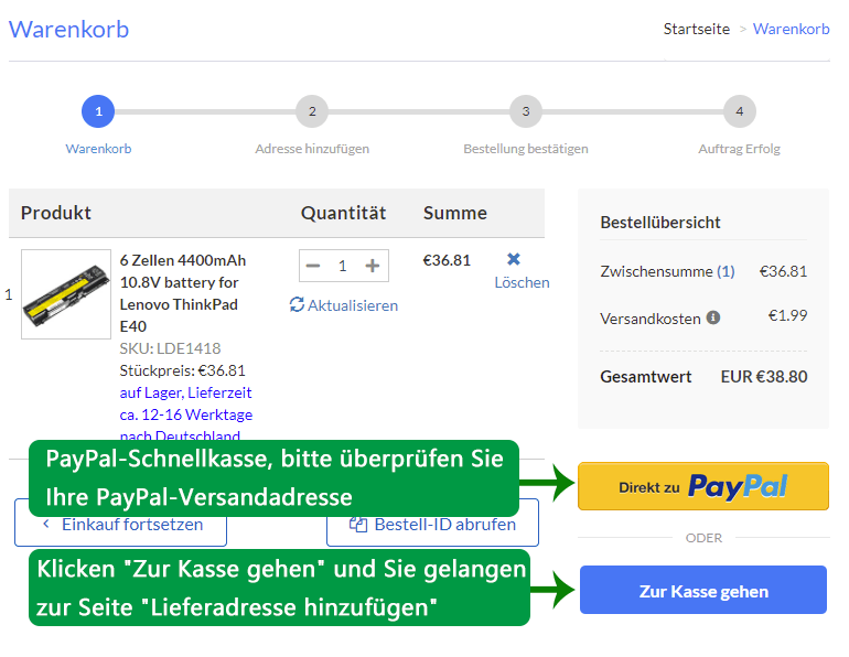 To place an order from LenovoAkkuShop.de is easy. We have provided here with a guideline to assist you on how to place an order with us.