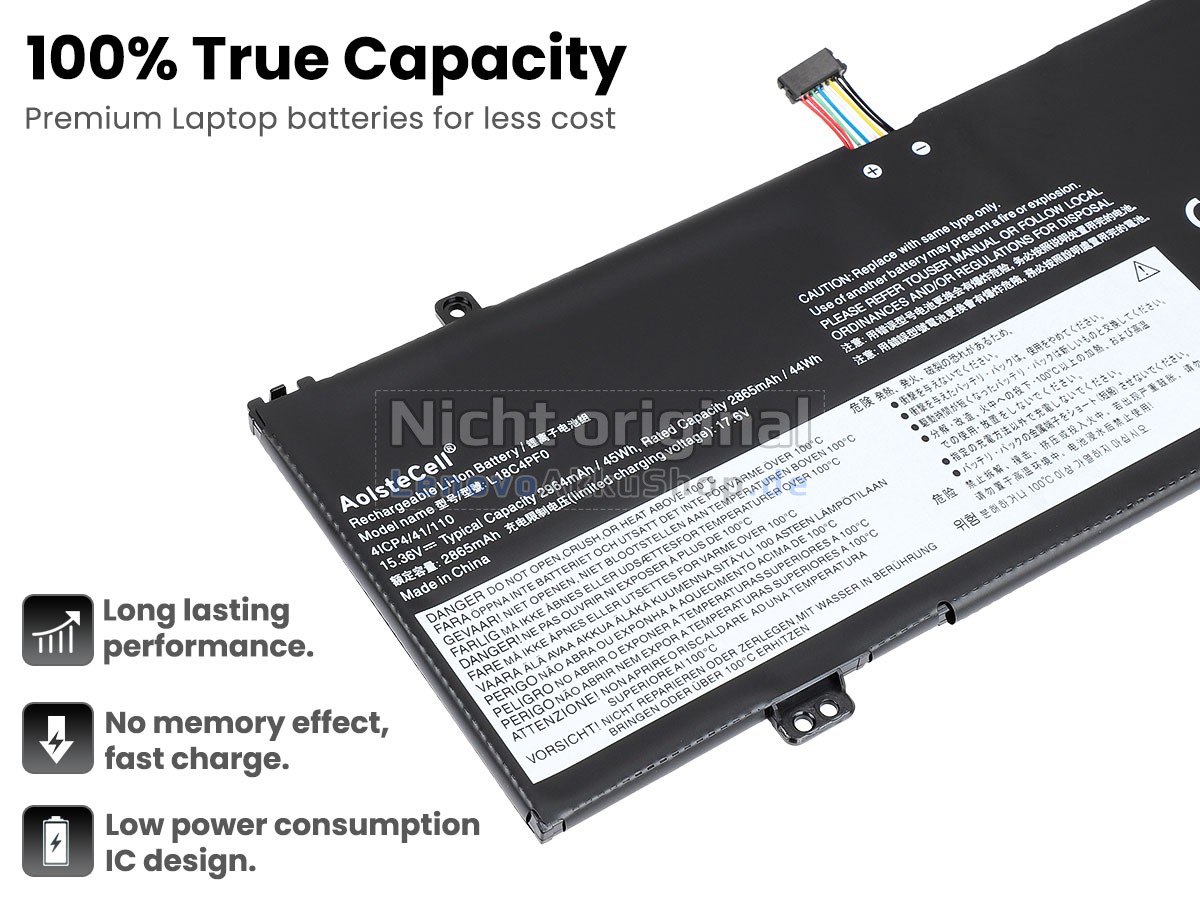 Alle Ersatzakkus für Lenovo L18C4PF0 bieten eine 30-tägige Geld-zurück-Garantie und einen einjährigen Garantieservice an. Kaufen Sie unsere Akkus ganz ruhig! Weitere Informationen finden Sie in der „Garantierichtlinie“.