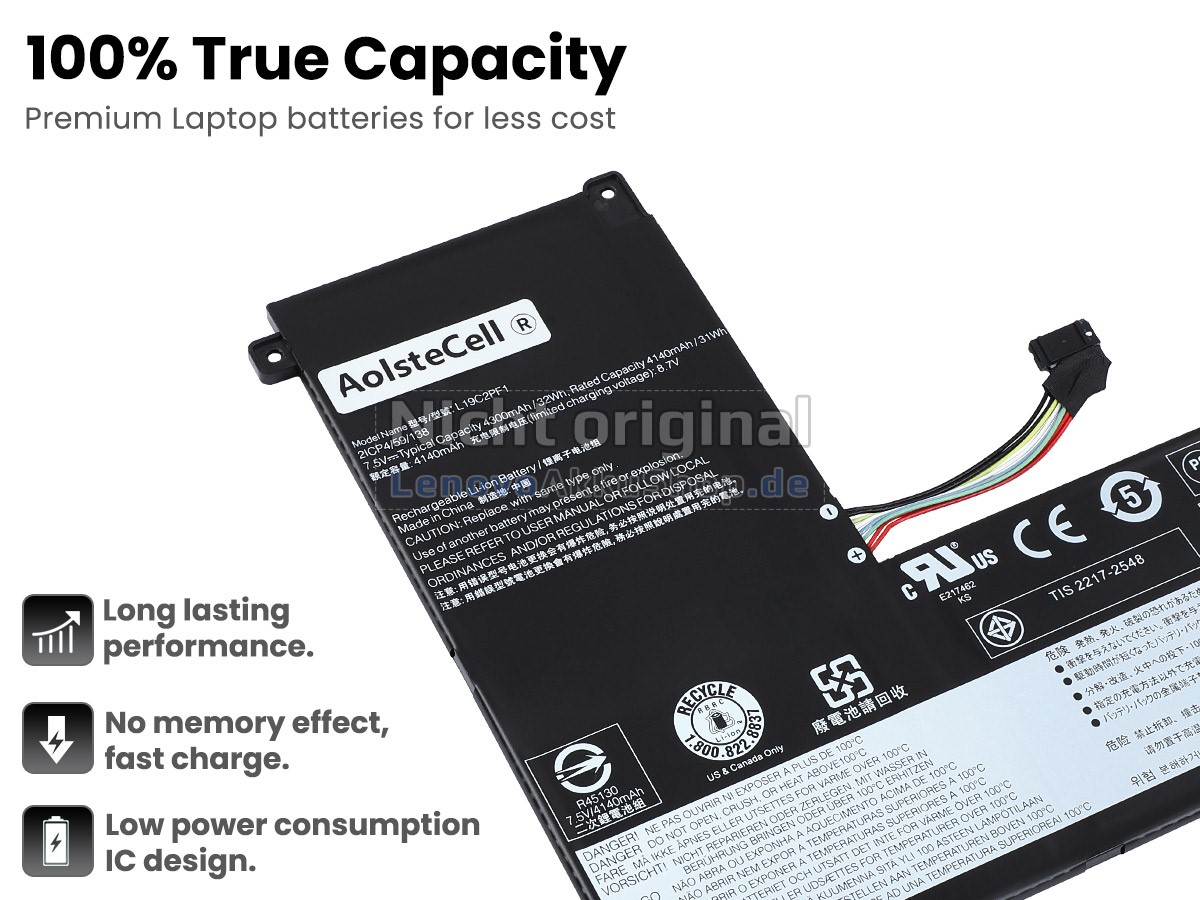 Alle Ersatzakkus für Lenovo L19C2PF1 bieten eine 30-tägige Geld-zurück-Garantie und einen einjährigen Garantieservice an. Kaufen Sie unsere Akkus ganz ruhig! Weitere Informationen finden Sie in der „Garantierichtlinie“.