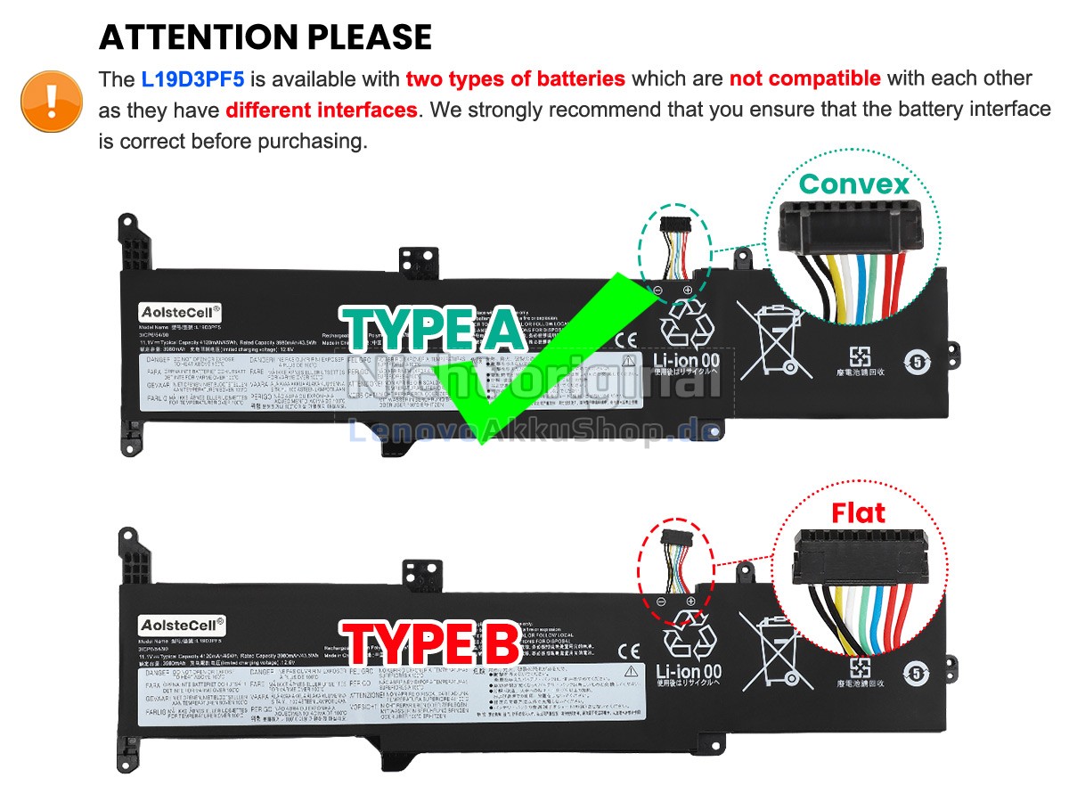 Before placing an order please check your old battery first, ensure order one correct battery for your laptop. 3 Zellen 45WhAkku für Lenovo L19D3PF5