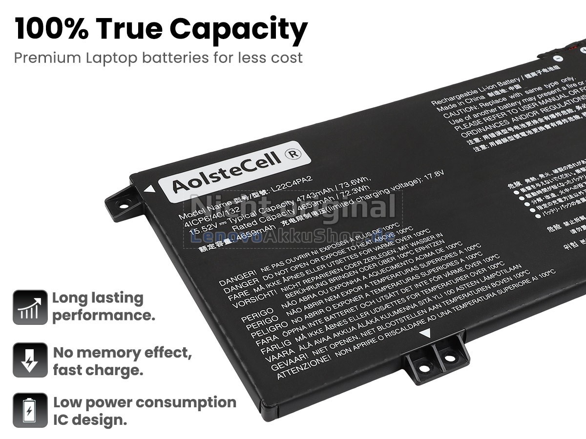 Alle Ersatzakkus für Lenovo L22D4PA2 bieten eine 30-tägige Geld-zurück-Garantie und einen einjährigen Garantieservice an. Kaufen Sie unsere Akkus ganz ruhig! Weitere Informationen finden Sie in der „Garantierichtlinie“.